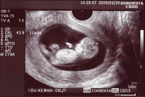 Саме зараз проводиться перше офіційне ультразвукове обстеження. Плід підріс вже настільки (БПР (відстань між тім'яними кістками) 18 мм, довжина стегна 7 мм, окружність грудей 20 мм, вага 11 грам, КТР складає 6.8 см.), його відмінно видно при ультразвуковому дослідженні і можна оцінити правильність його розвитку. Хоча стать ще не зможуть сказати, але зараз більш важливе здоров'я мами та її майбутнього малюка.
